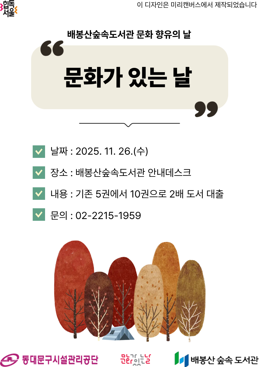 [배봉산숲속도서관] 2025년 11월 문화가 있는 날