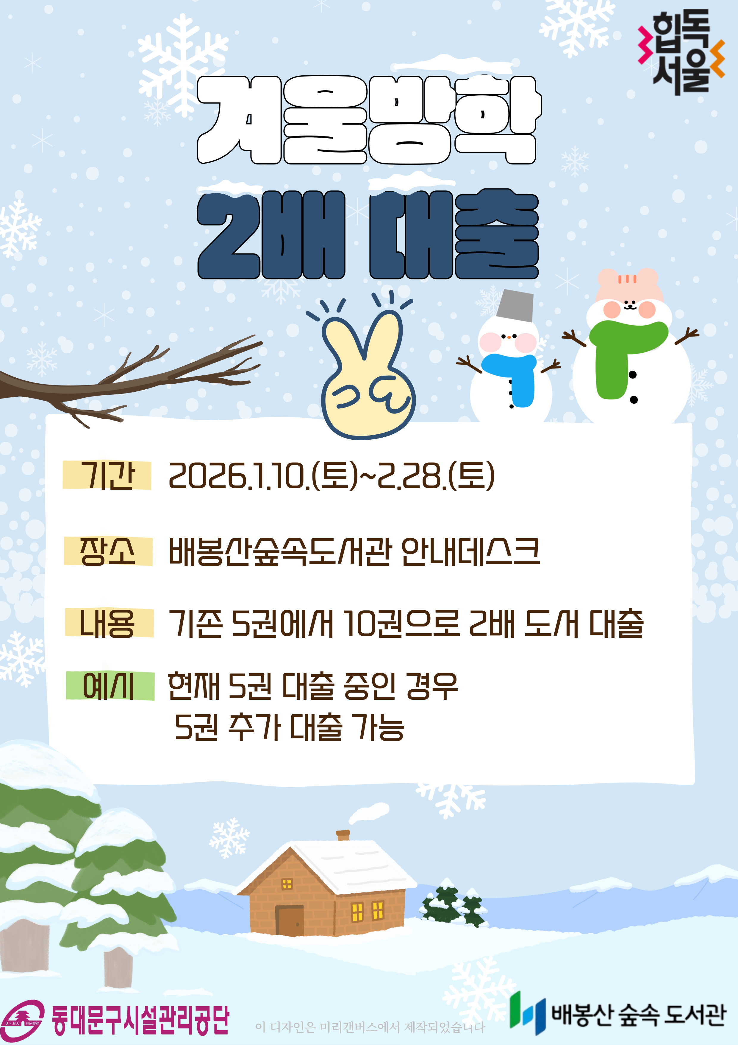 [배봉산숲속도서관] 겨울 방학 2배 대출 행사