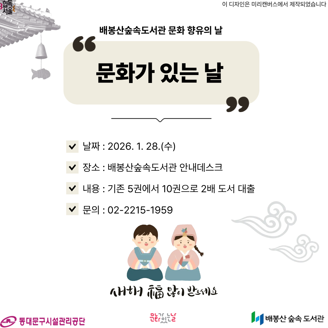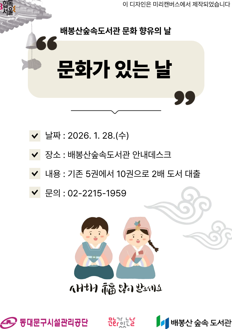 [배봉산숲속도서관] 2026년 1월 문화가 있는 날