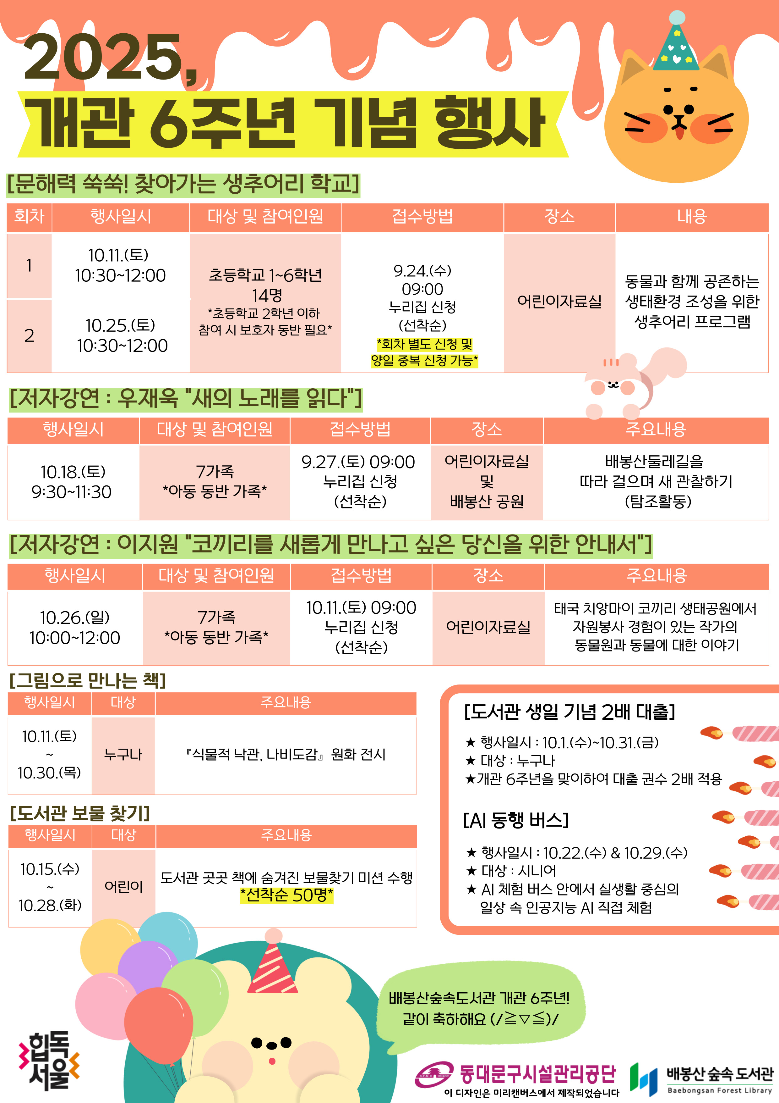 [배봉산숲속도서관] 10월 개관 6주년 기념 행사 안내
