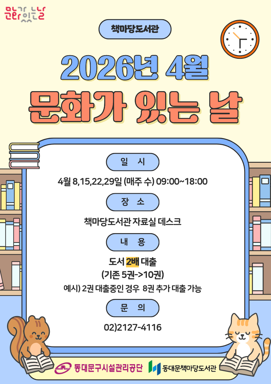 [책마당] 2026년 4월 문화가 있는 날 안내