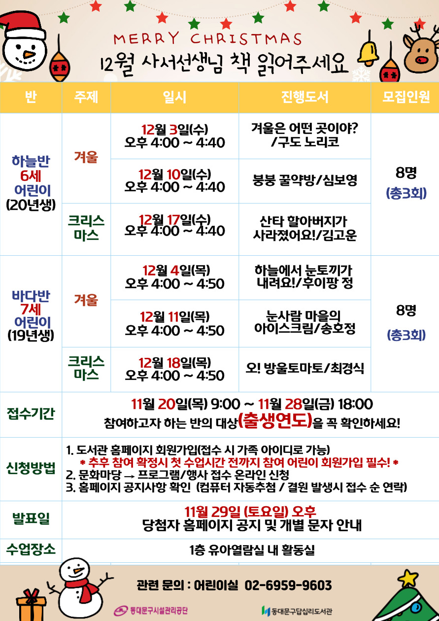 [프로그램] 2025년 12월 사서선생님~ 책 읽어주세요! 참여 어린이 모집 안내