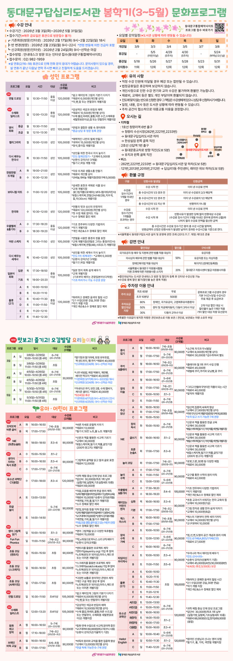 [문화] 봄학기(3~5월) 문화프로그램 수강생 모집