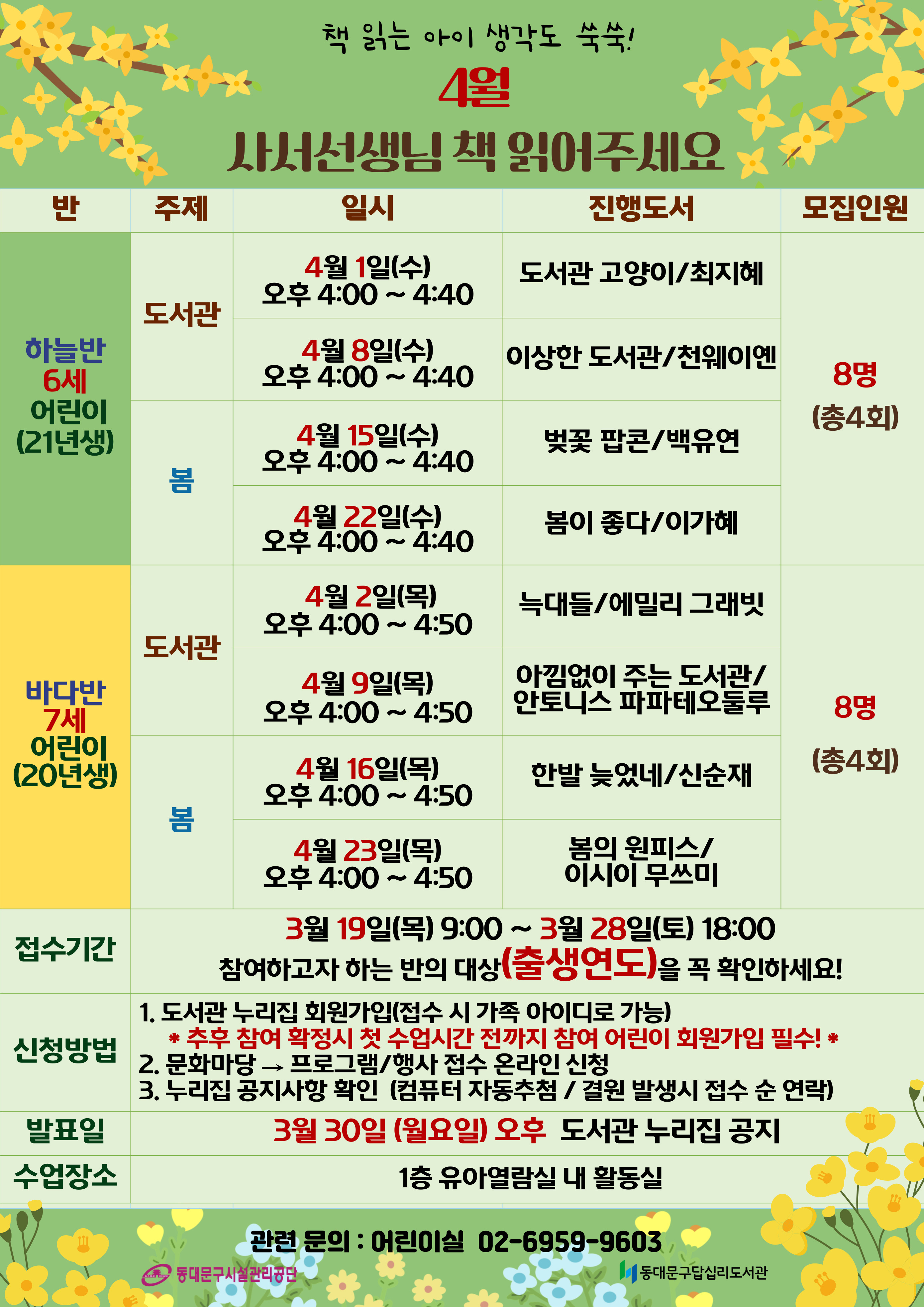 [프로그램] 2026년 4월 사서선생님~ 책 읽어주세요! 참여 어린이 모집 안내