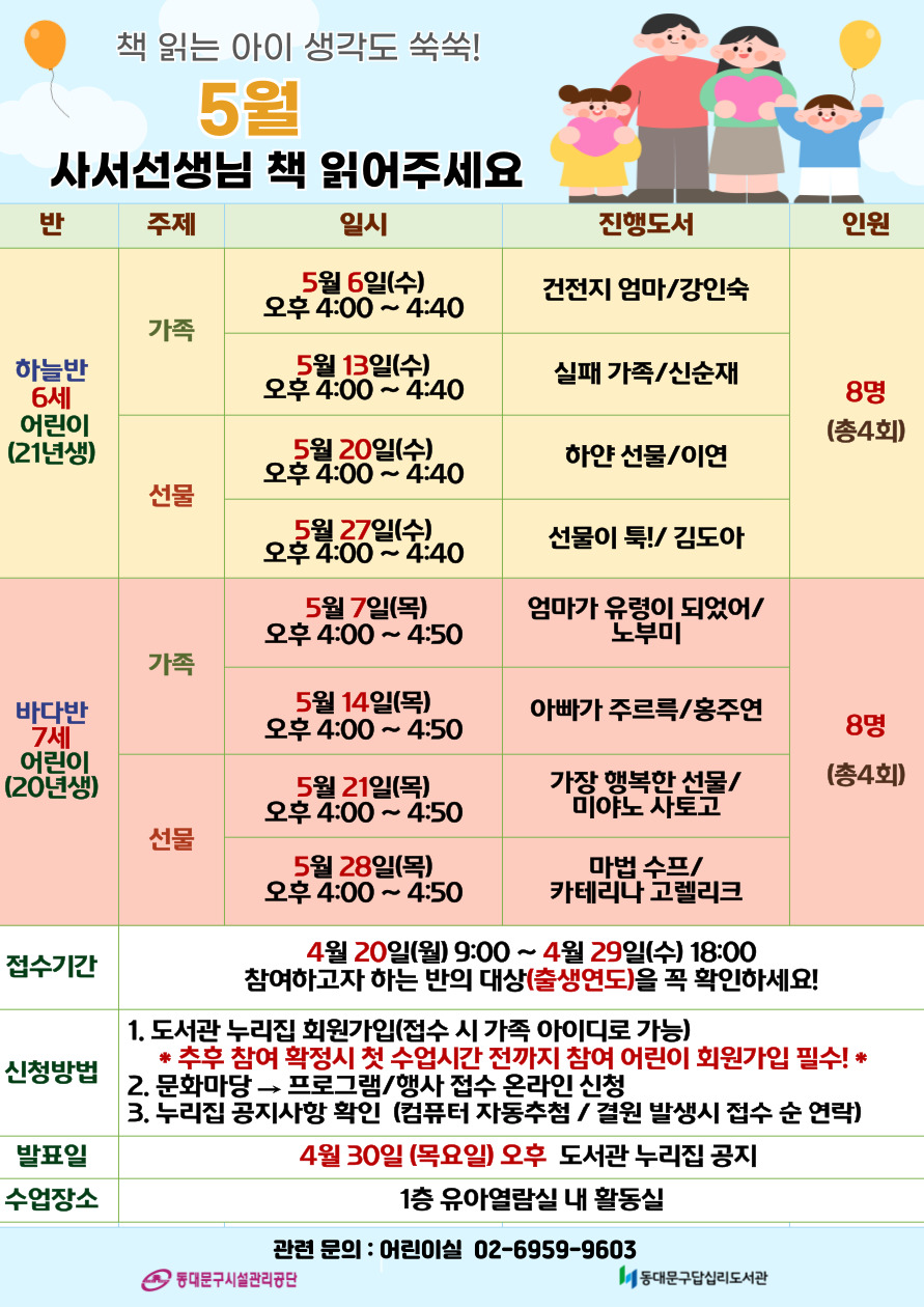 [프로그램] 2026년 5월 사서선생님~ 책 읽어주세요! 참여 어린이 모집 안내
