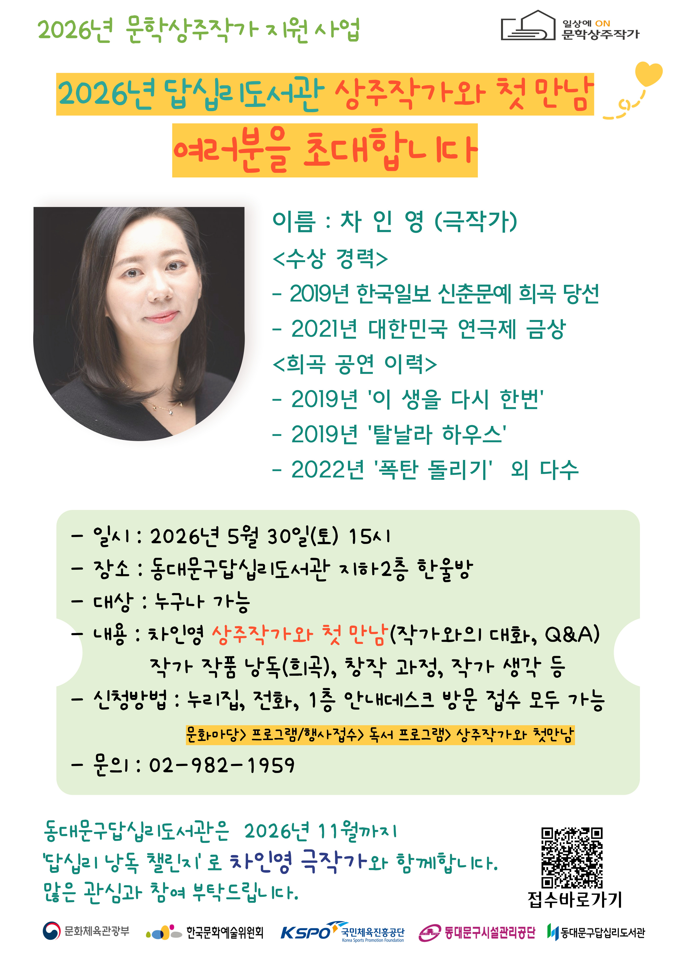 2026년 상주작가와 첫 만남 안내
