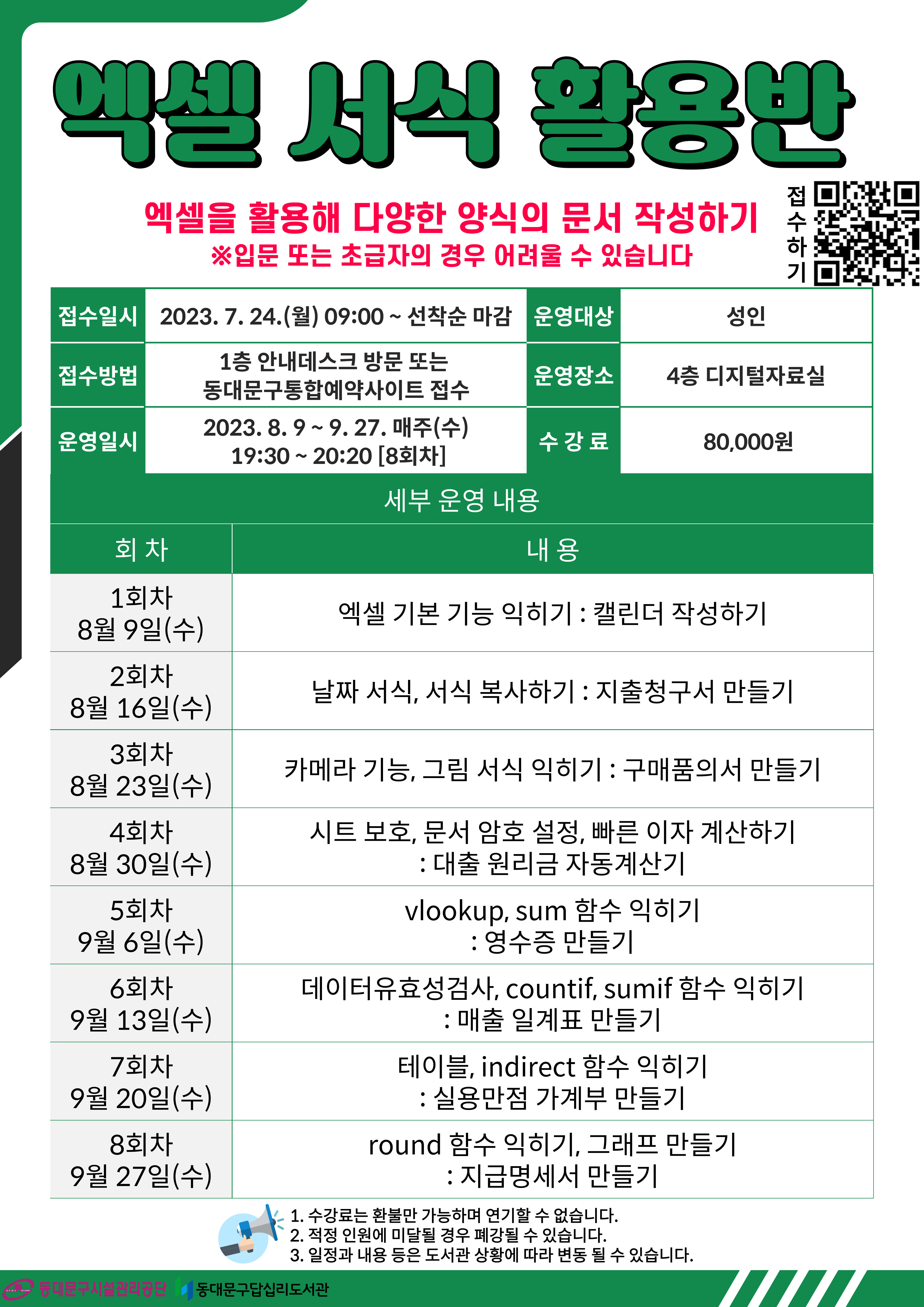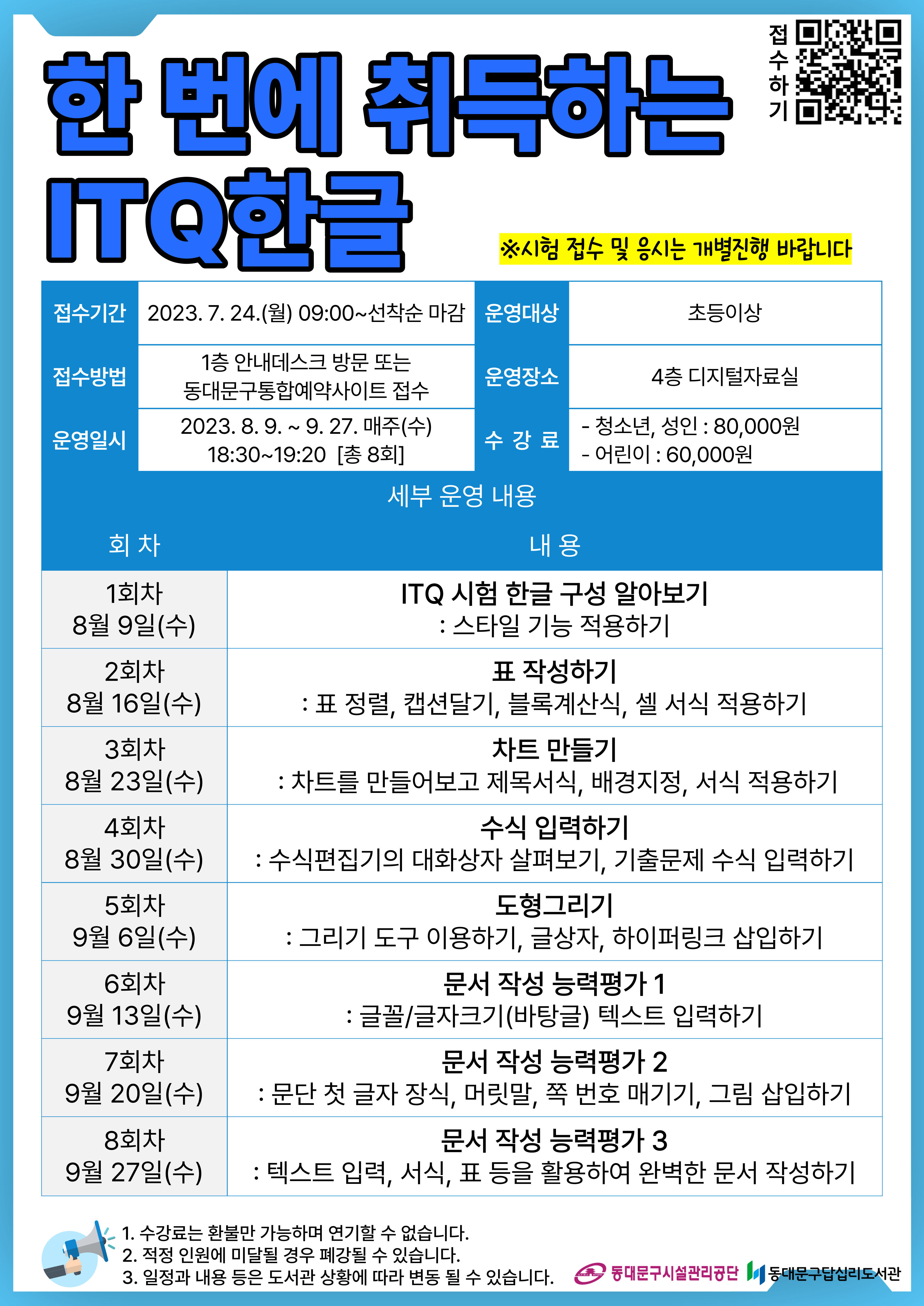 8~9월 엑셀 서식 활용/ ITQ한글 특강 안내(7/24~ 접수)
