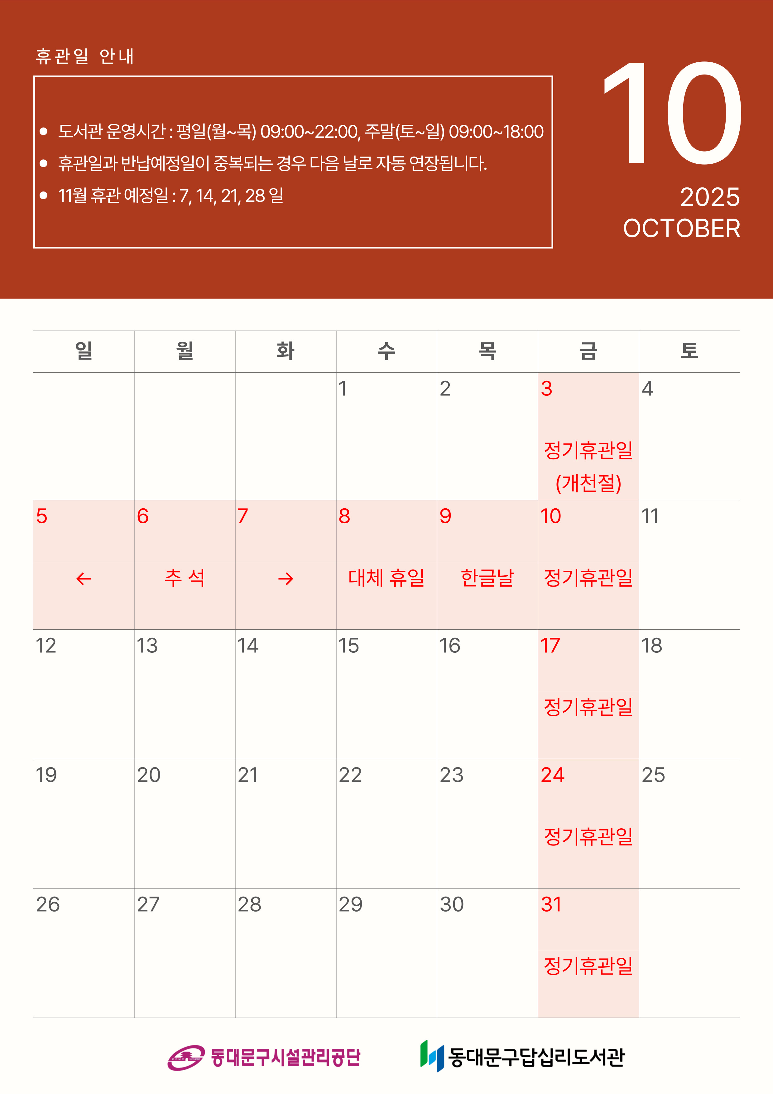 [이문어린이도서관] 10월 연휴에 따른 도서 반납 안내