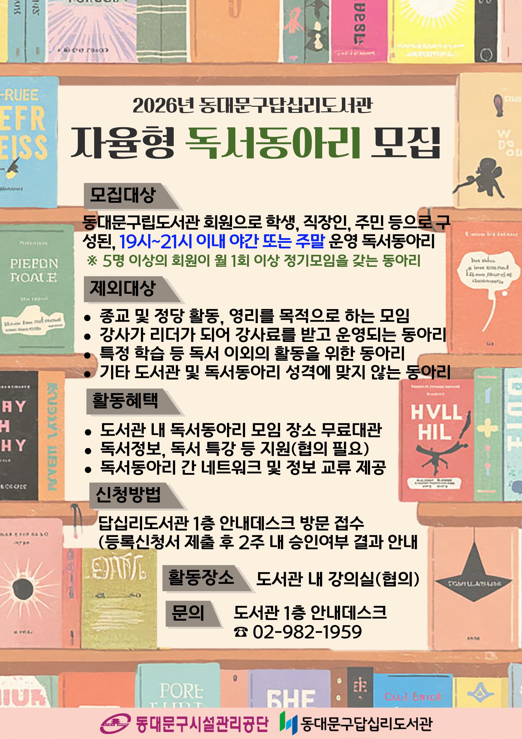 평일 야간이나 주말에 활동할 자율형 독서동아리를 모집합니다📢