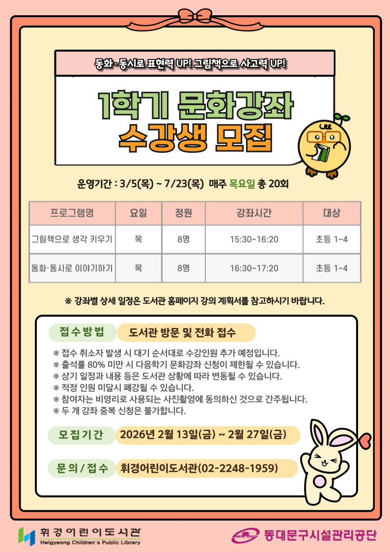 - 접수방법: 도서관 방문 및 전화 접수 (☎ 02-2248-1959)