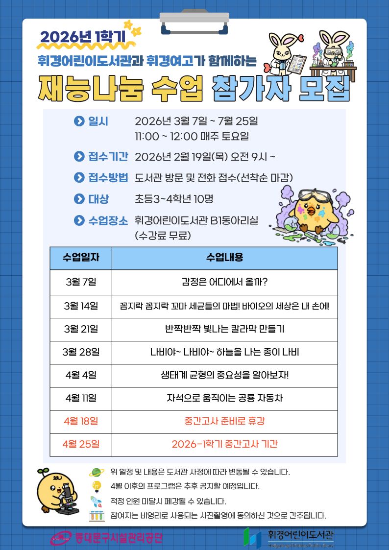 2026년 1학기 휘경여고 재능나눔 수업 모집 안내