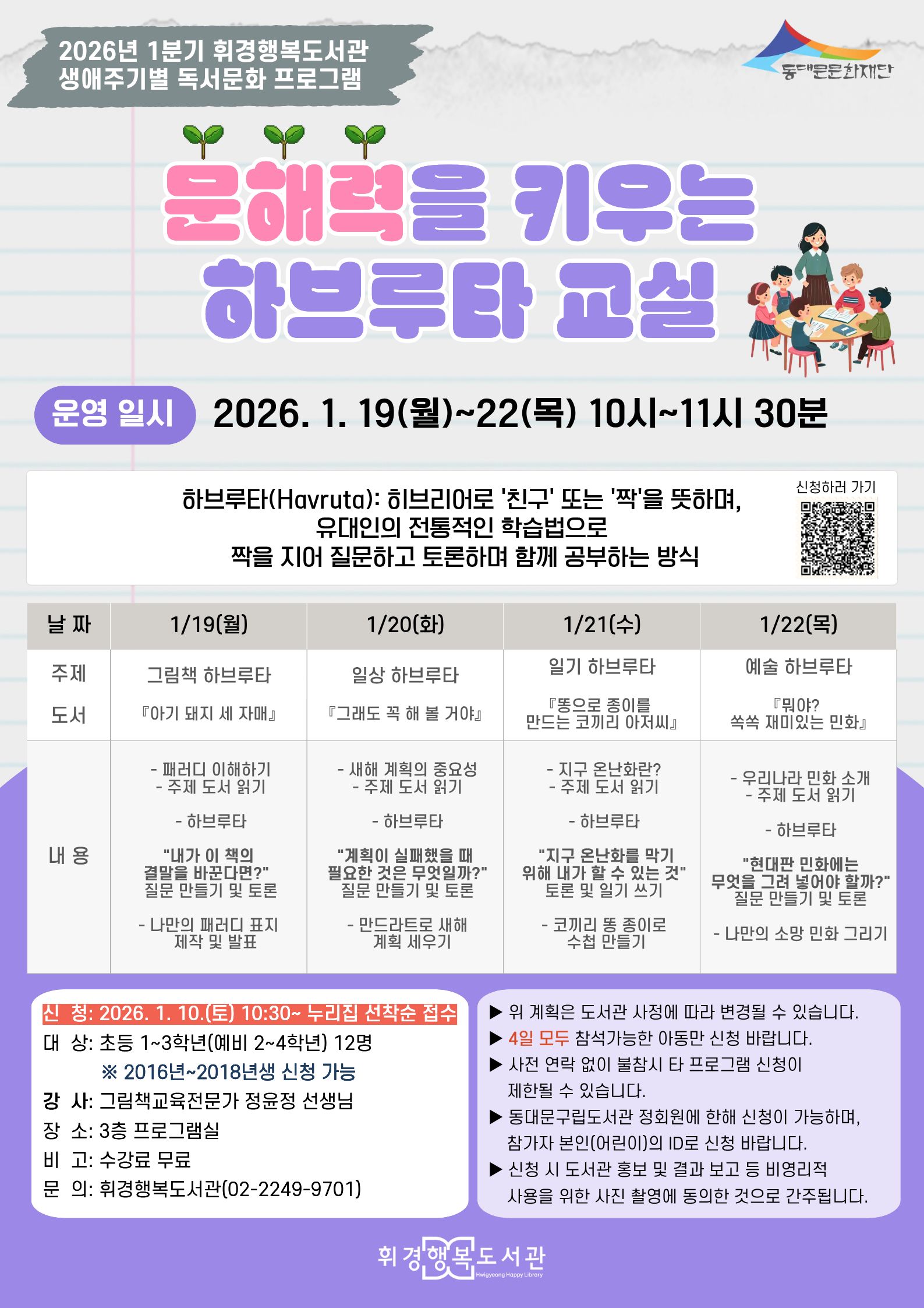 | 강좌명 | 휘경행복 [26년 1분기] 문해력을 키우는 하브루타 교실 |