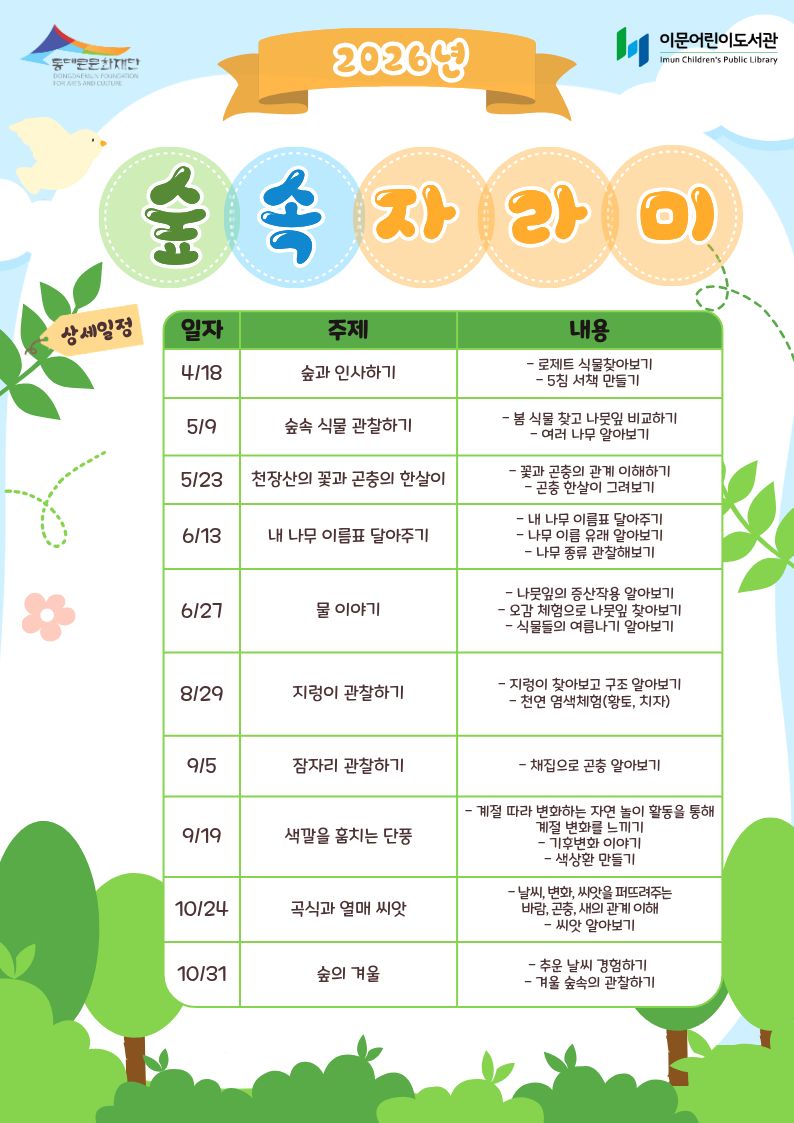| 제목 | [이문어린이도서관] 2026년 숲속 자라미 모집 안내 |