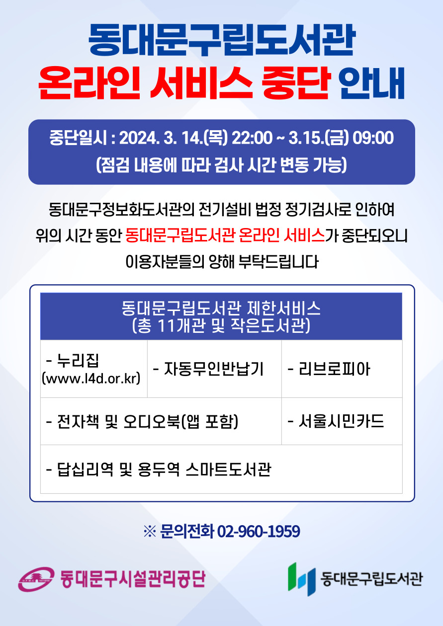 동대문구립도서관 온라인 서비스 중단 안내