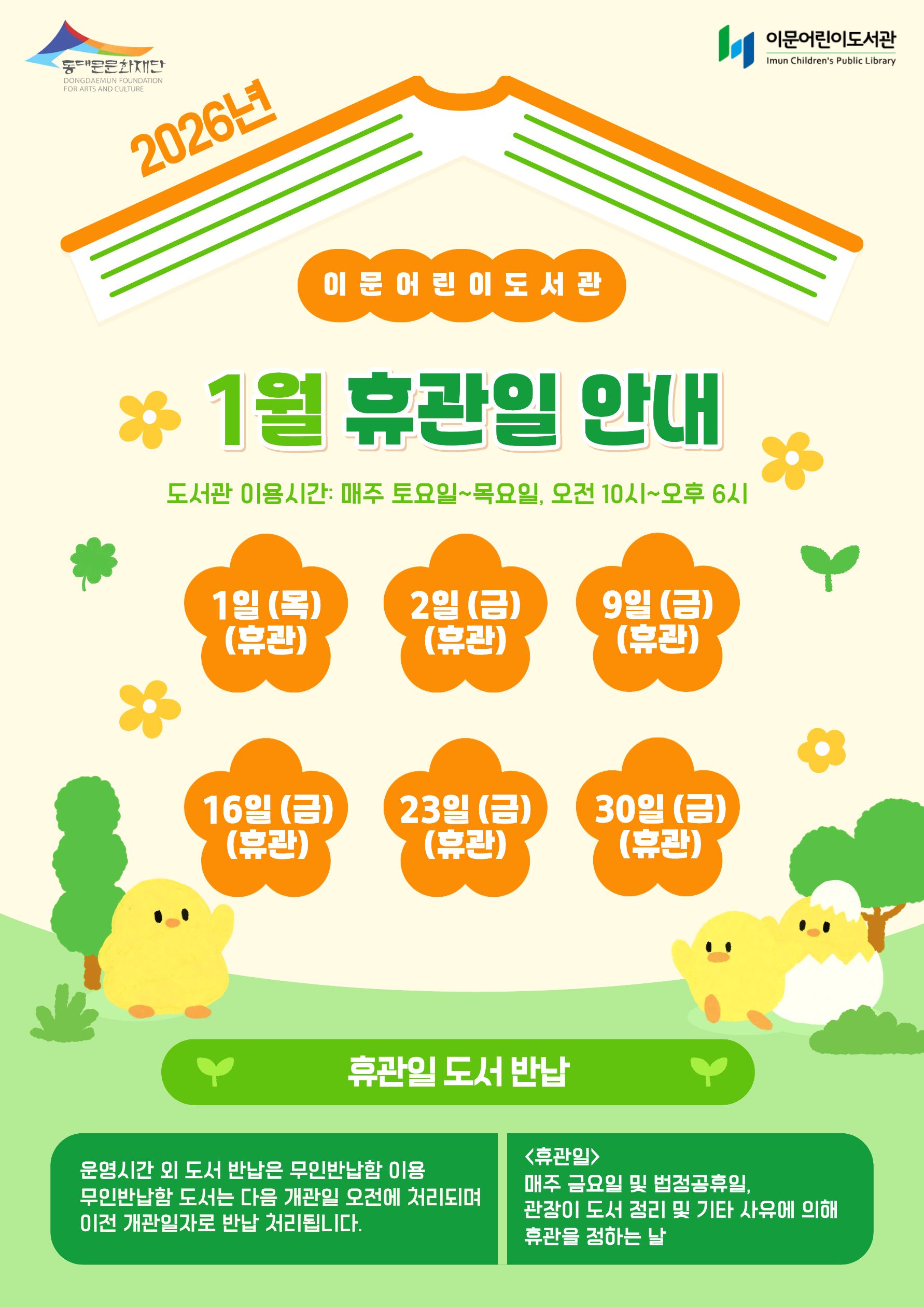 [이문어린이도서관] 2026년 1월 휴관일 안내