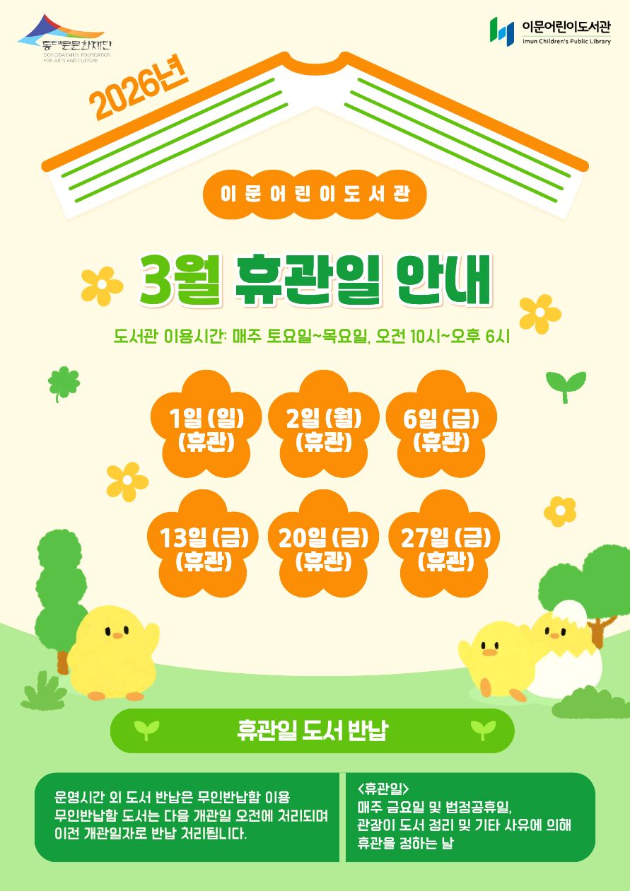 [이문어린이도서관] 2026년 3월 휴관일 안내