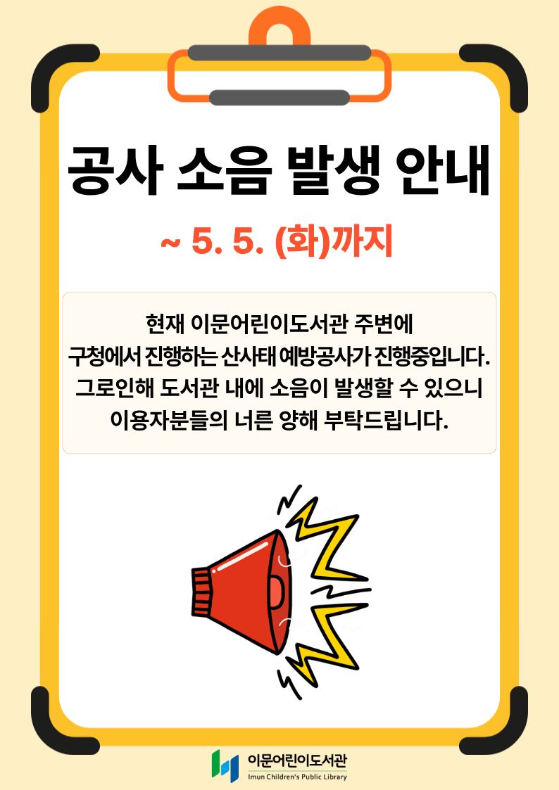 [이문어린이도서관] 도서관 외부 공사 소음 발생 안내