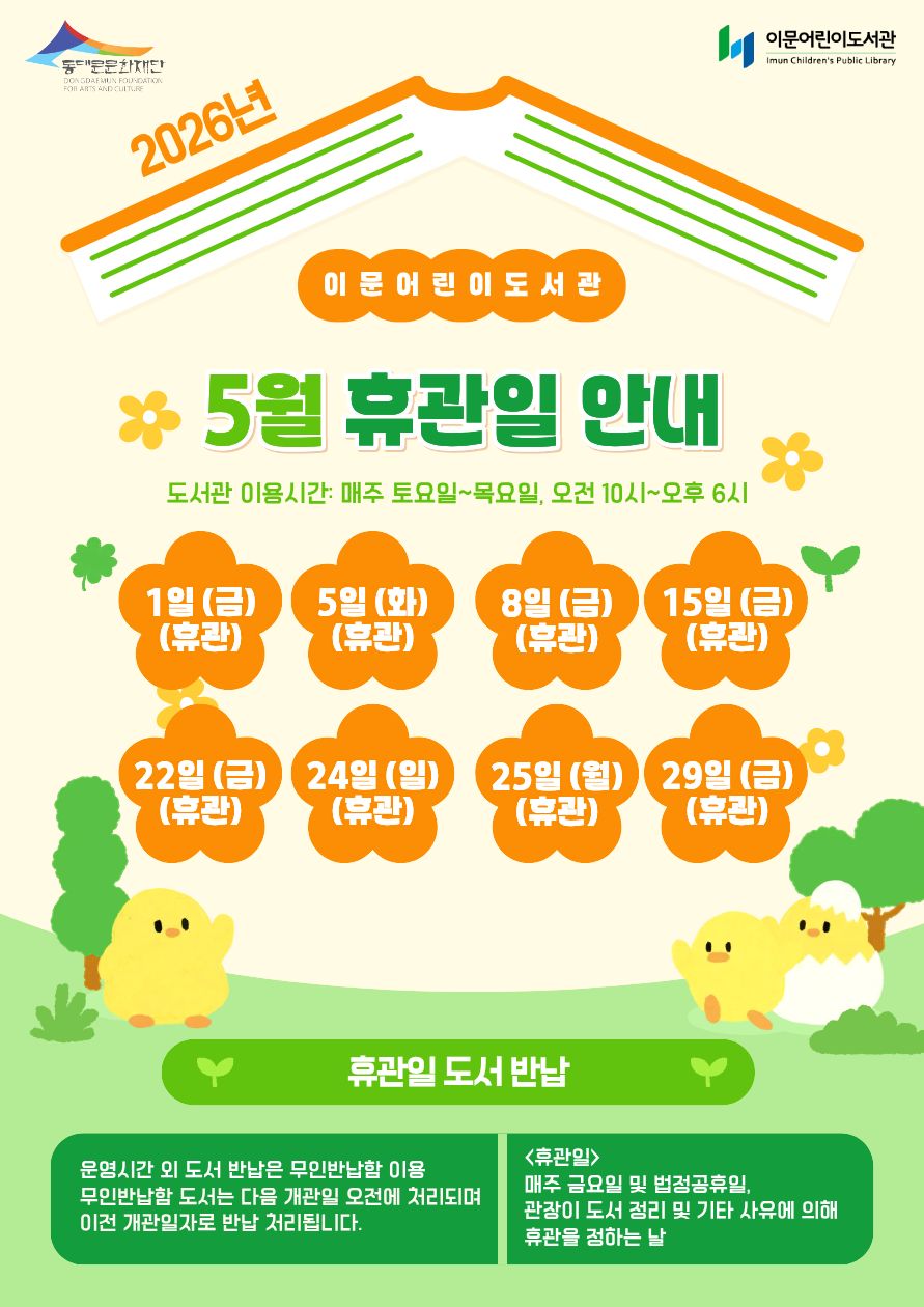 [이문어린이도서관] 2026년 5월 휴관일 안내