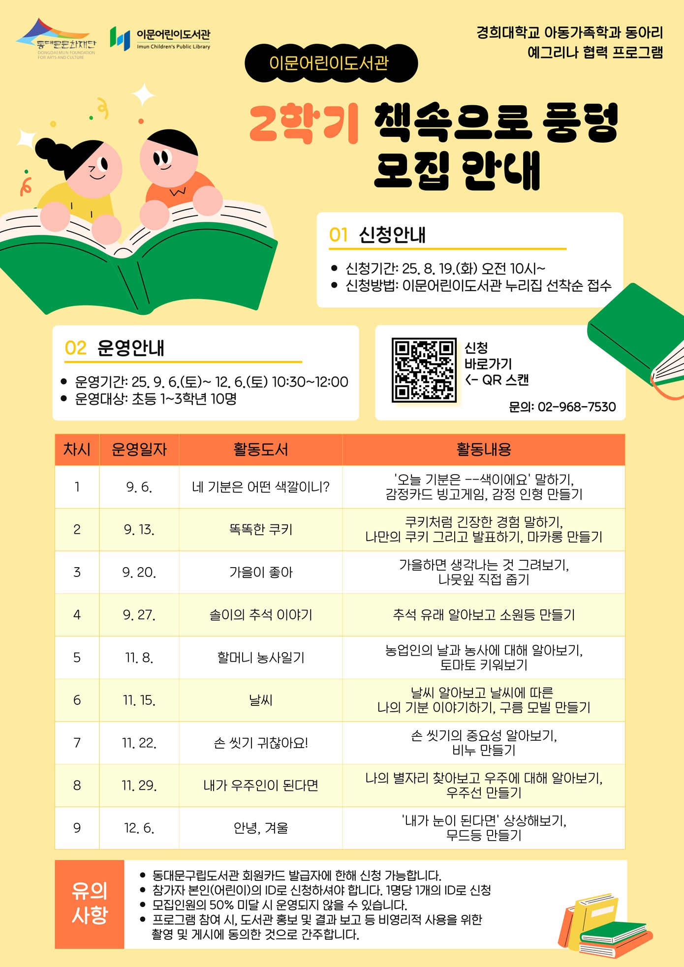 | 강좌명 | 이문어린이 [2025년 2학기] 책속으로 풍덩 |