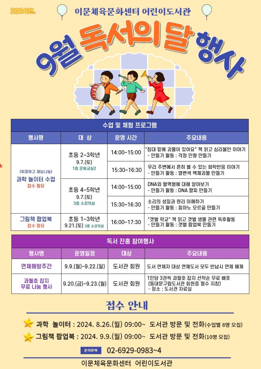[행사]2024년 9월 독서의 달 행사(이문체육문화센터 어린이도서관)