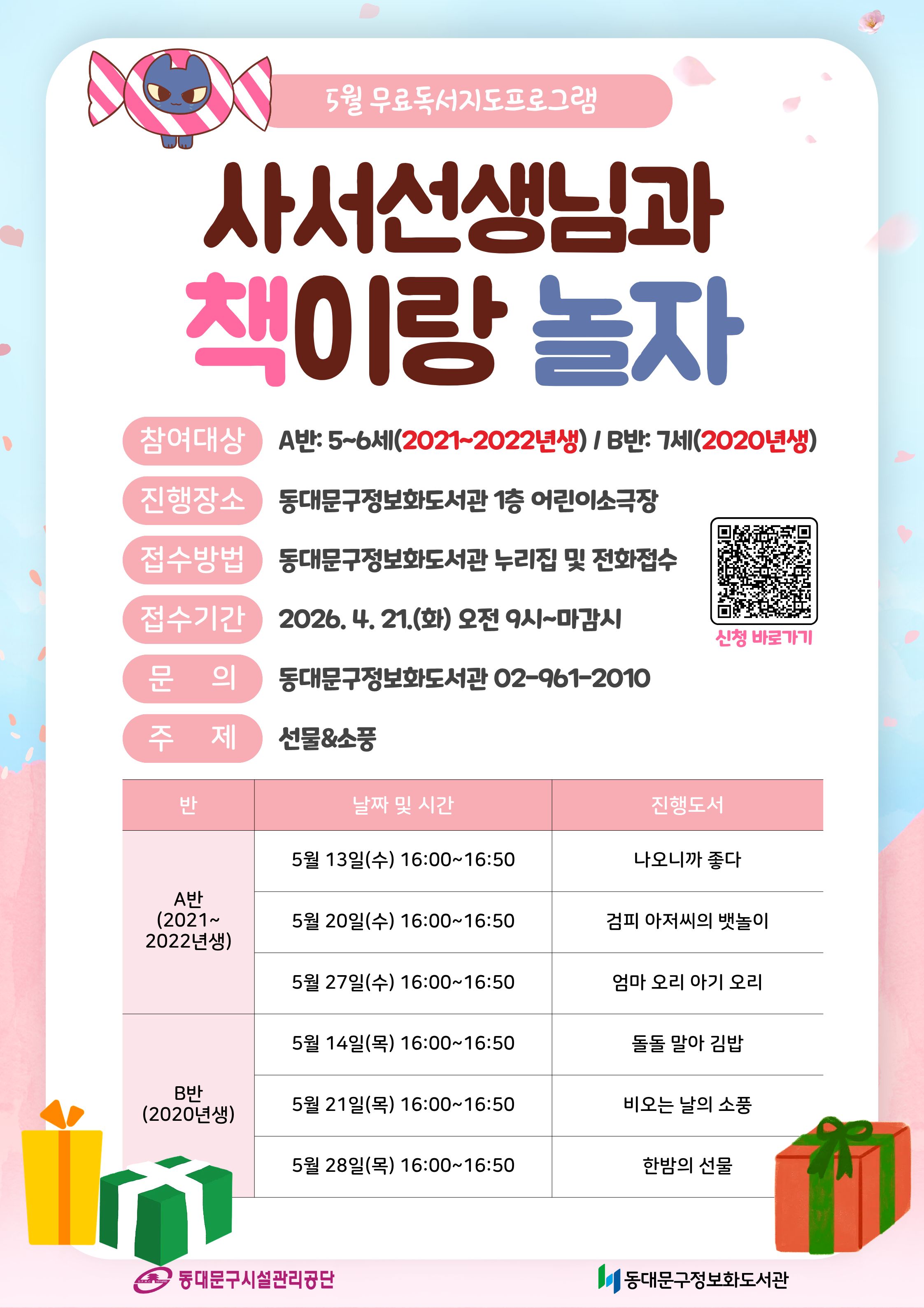 [책놀이] 🎁5월 사서선생님과 책이랑 놀자 모집 안내(5~6세 수요일 오후 4시, 7세 목요일 오후 4시