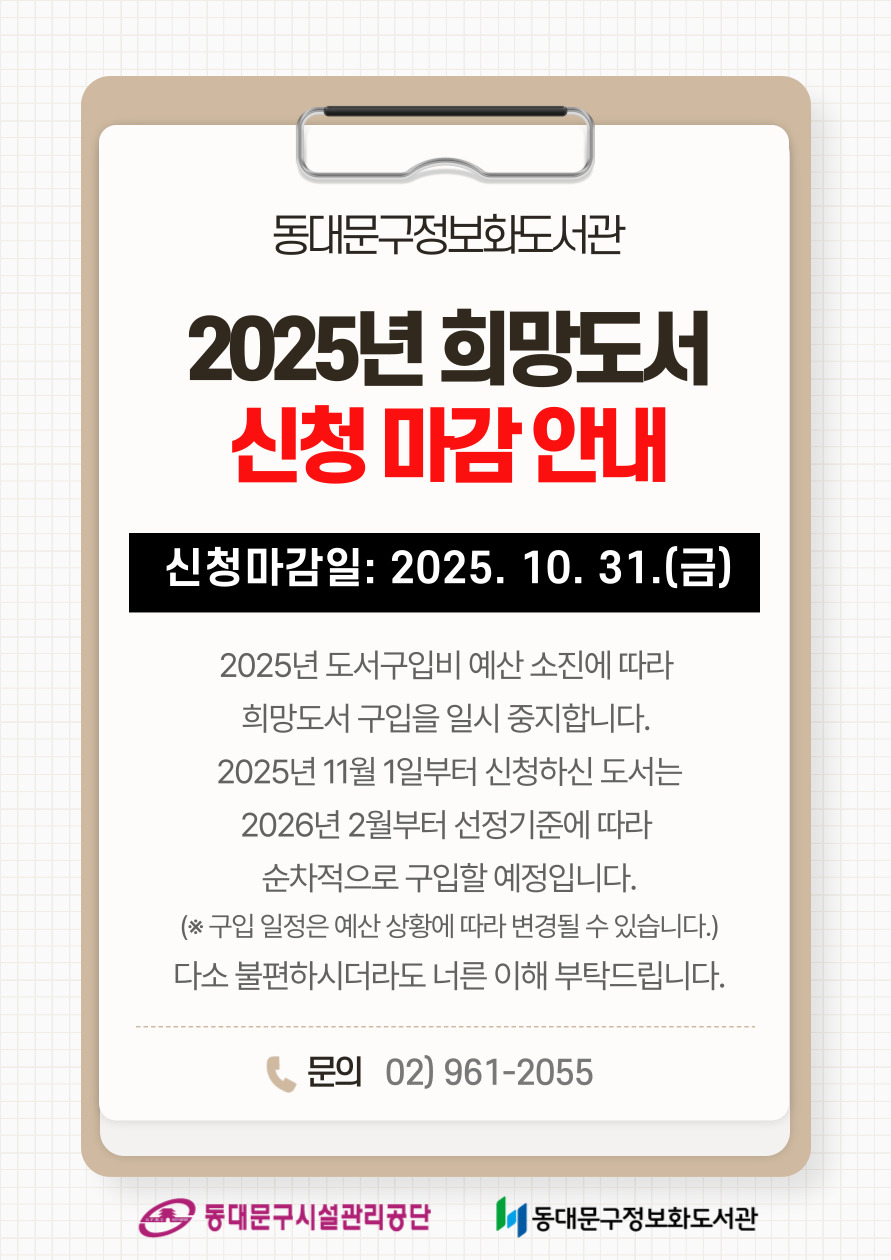 [공지] 동대문구정보화도서관 2025년 희망도서 마감 안내
