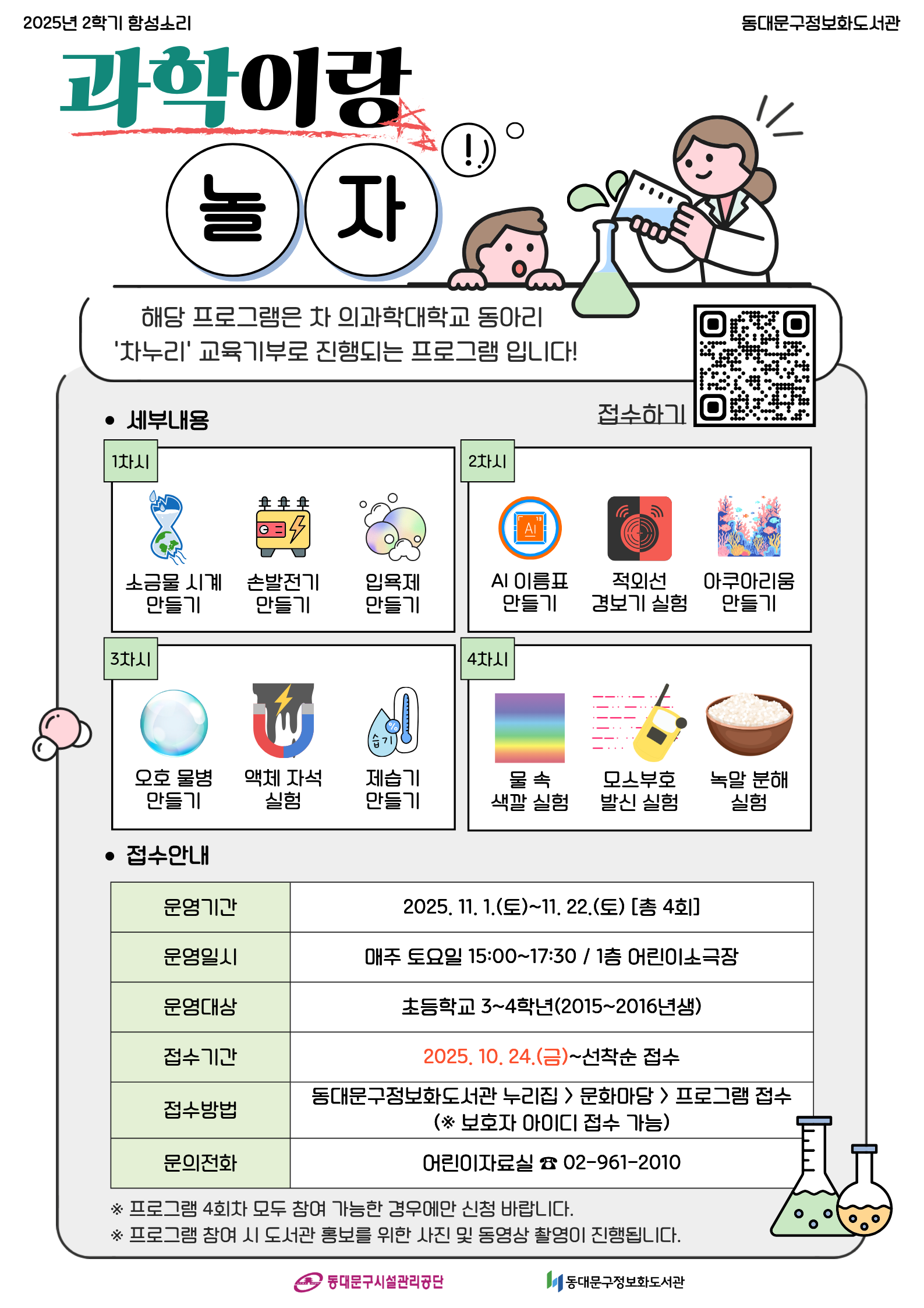 | 강좌명 | 정보화 [교육기부] 2025년 2학기 함성소리 '과학이랑 놀자!'(11/1~11/22) |