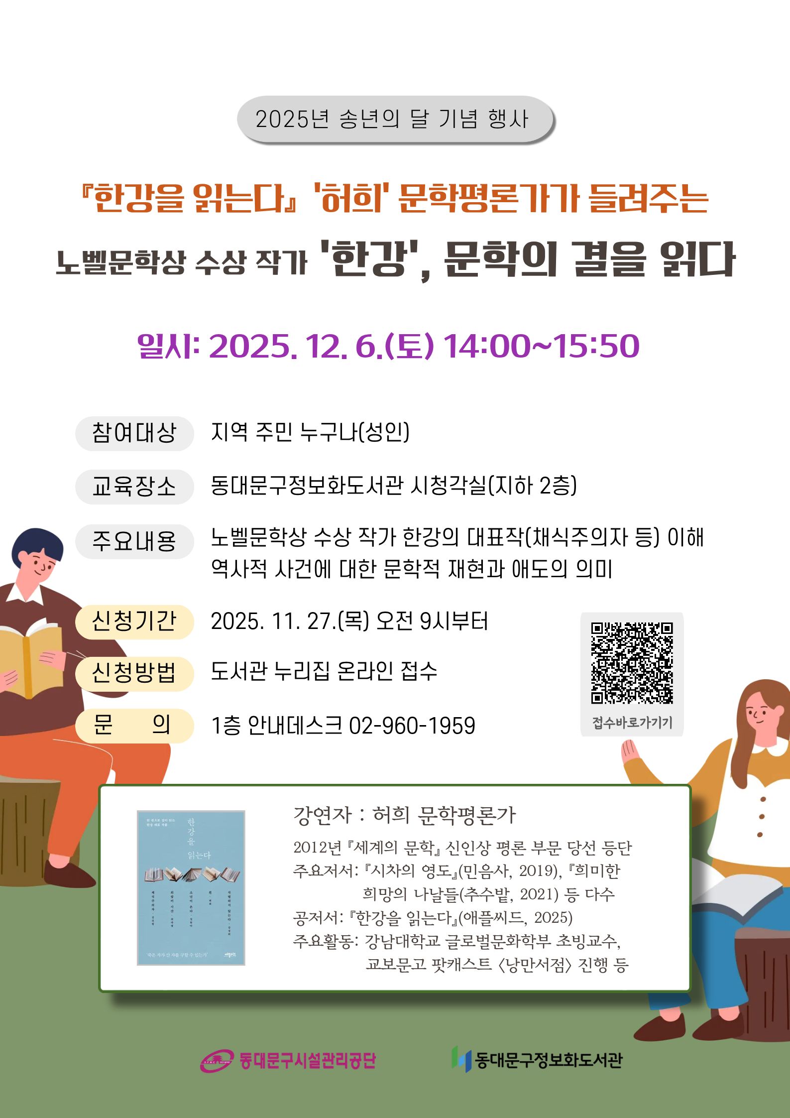 [송년행사] 🧩문학평론가가 들려주는 '한강, 문학의 결을 읽다(12/6)
