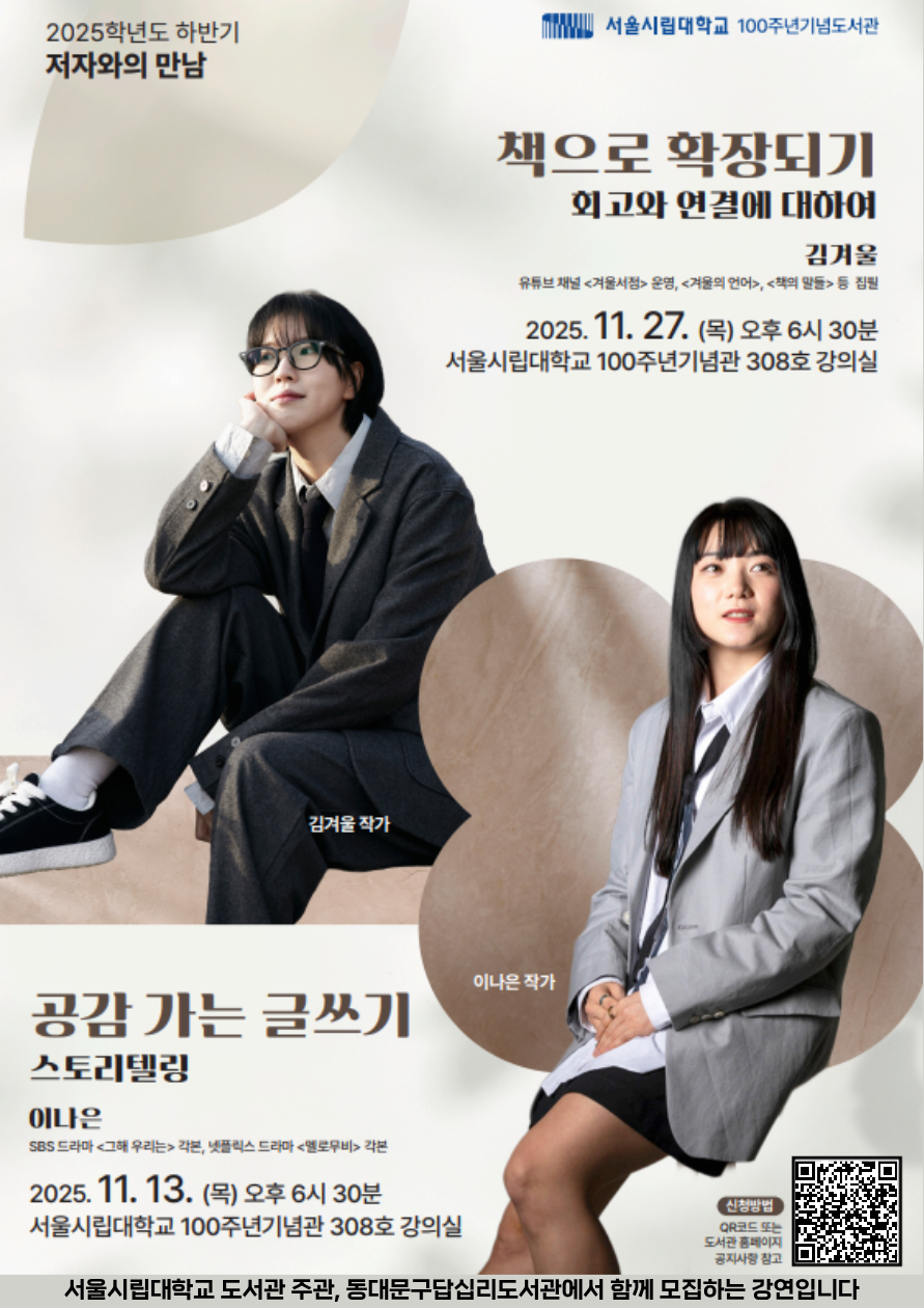 비고 | ★서울시립대학교에서 진행하는 강연입니다. 시립대학교 방문 가능하신 분만 신청 부탁드립니다^^ |
