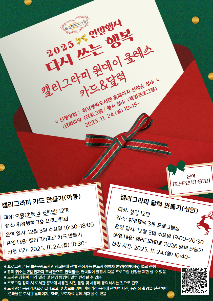 | 강좌명 | 휘경행복 [2025년 연말 행사] 캘리그라피 카드 & 달력Ⅰ(아동): 캘리그라피 카드 만들기 |
