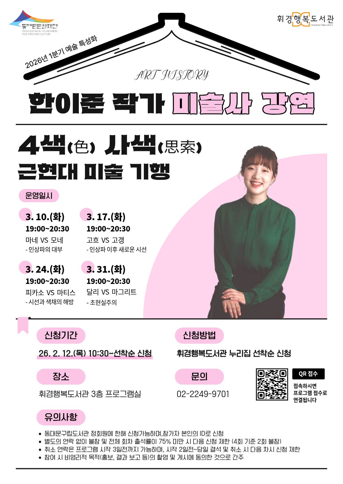 | 강좌명 | 휘경행복 [26년 1분기 예술특성화] 4색(色) 사색(思索) 근현대 미술 기행 |