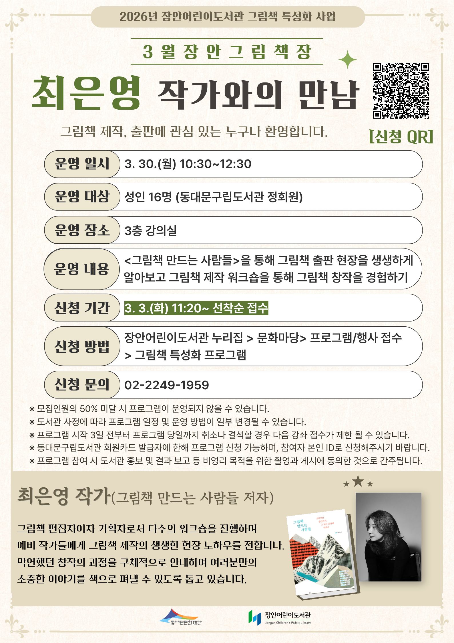 | 강좌명 | 장안 [2026년 그림책 특성화] 2026년 3월 장안 그림책장 최은영 작가와의 만남 |