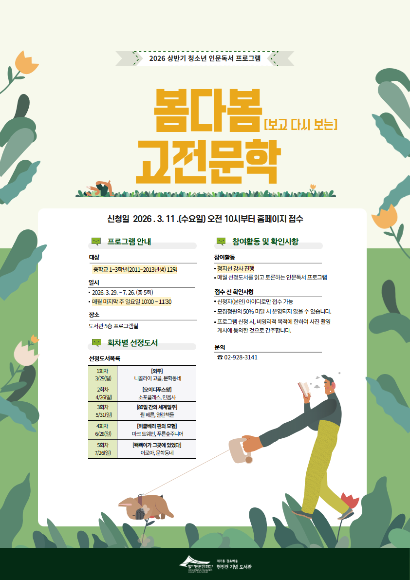 [청소년 인문독서 프로그램] 2026년 상반기 봄다봄(보고 다시 보는) 고전문학 모집 안내