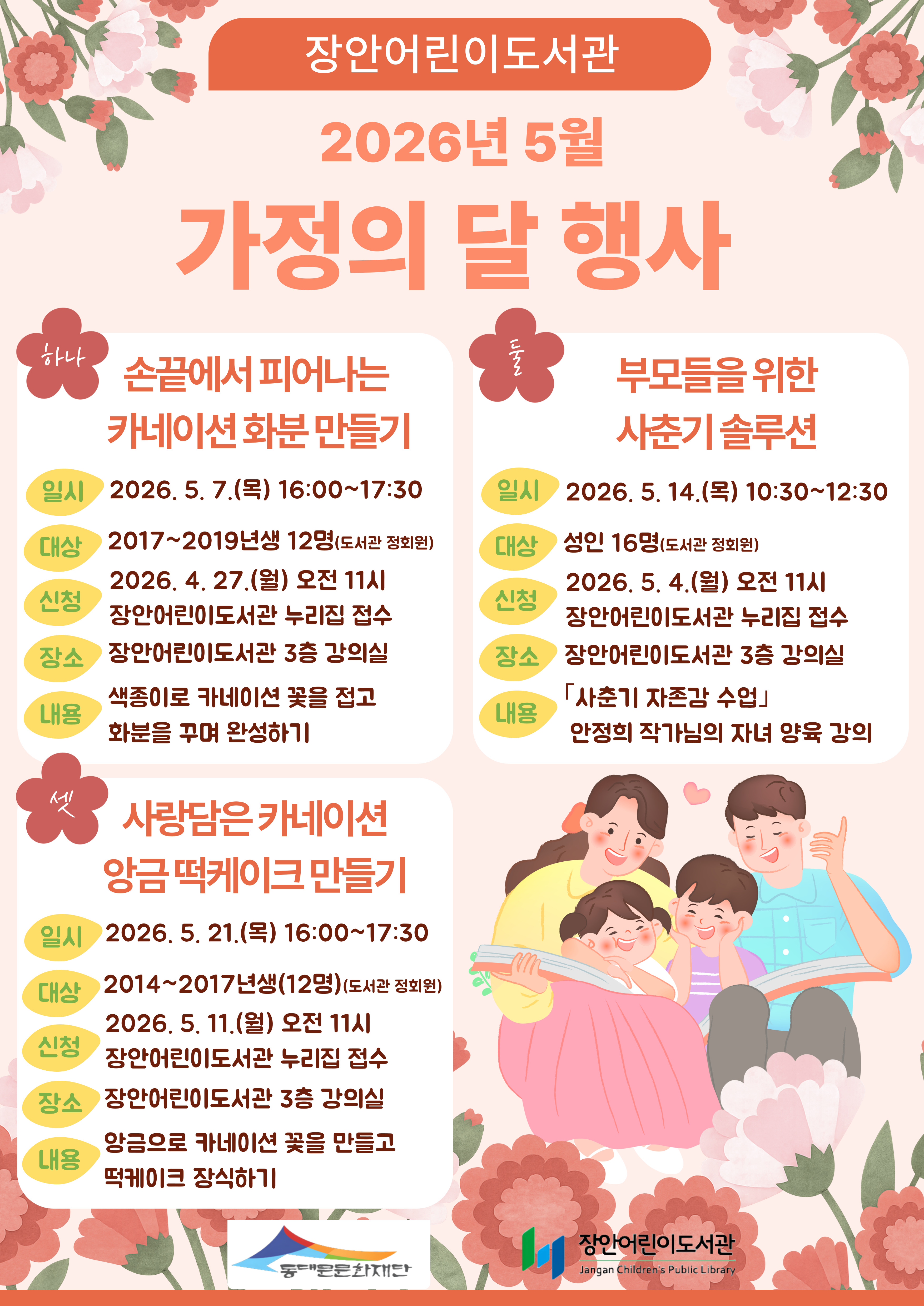| 강좌명 | 장안 [2026 가정의 달] 사랑담은 카네이션 앙금 떡케이크 만들기 : 2014~2017년생 |