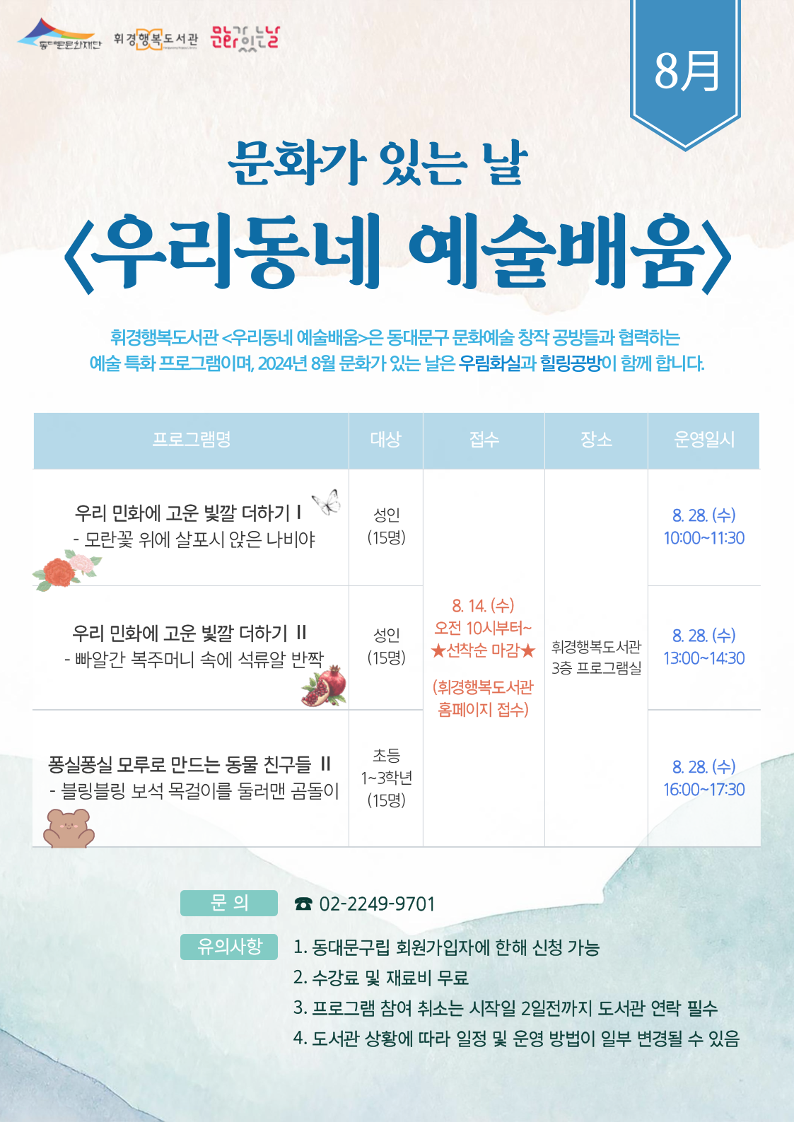 (성인) 8월 문화가 있는 날 <우리동네 예술배움> - 우리 민화에 고운 빛깔 더하기Ⅱ(빠알간 복주머니 속에 석류알 반짝)