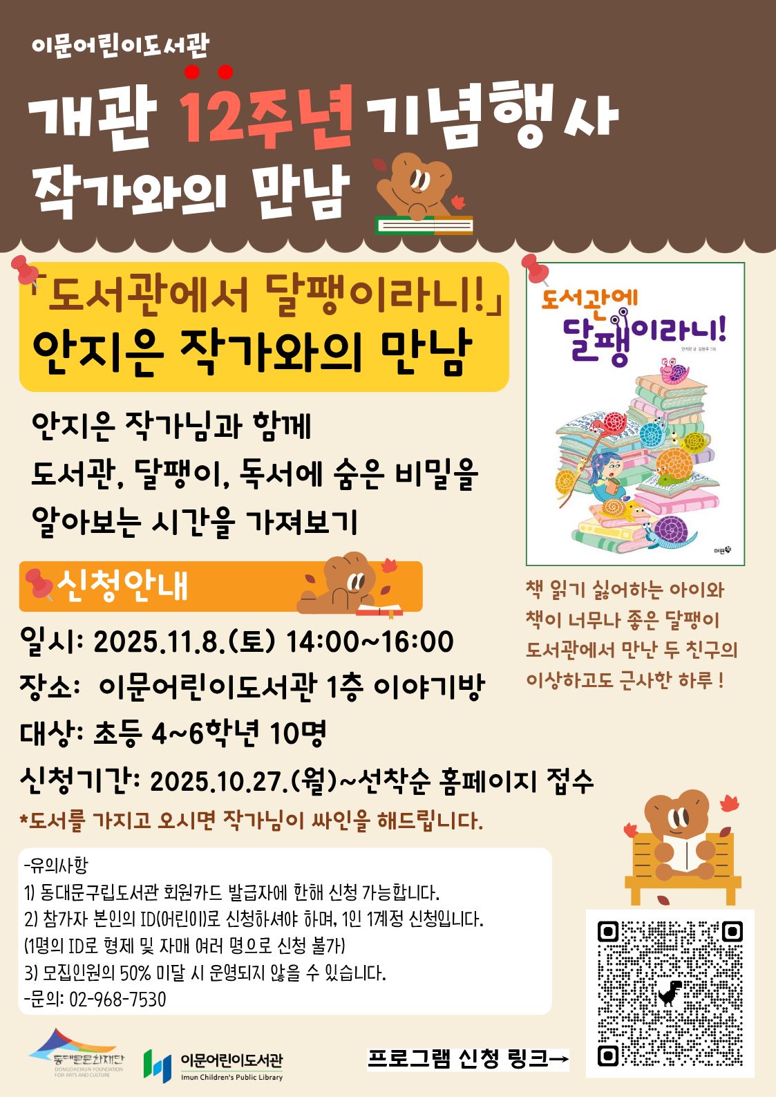 [개관기념] '도서관에 달팽이라니!' 안지은 글작가 강연