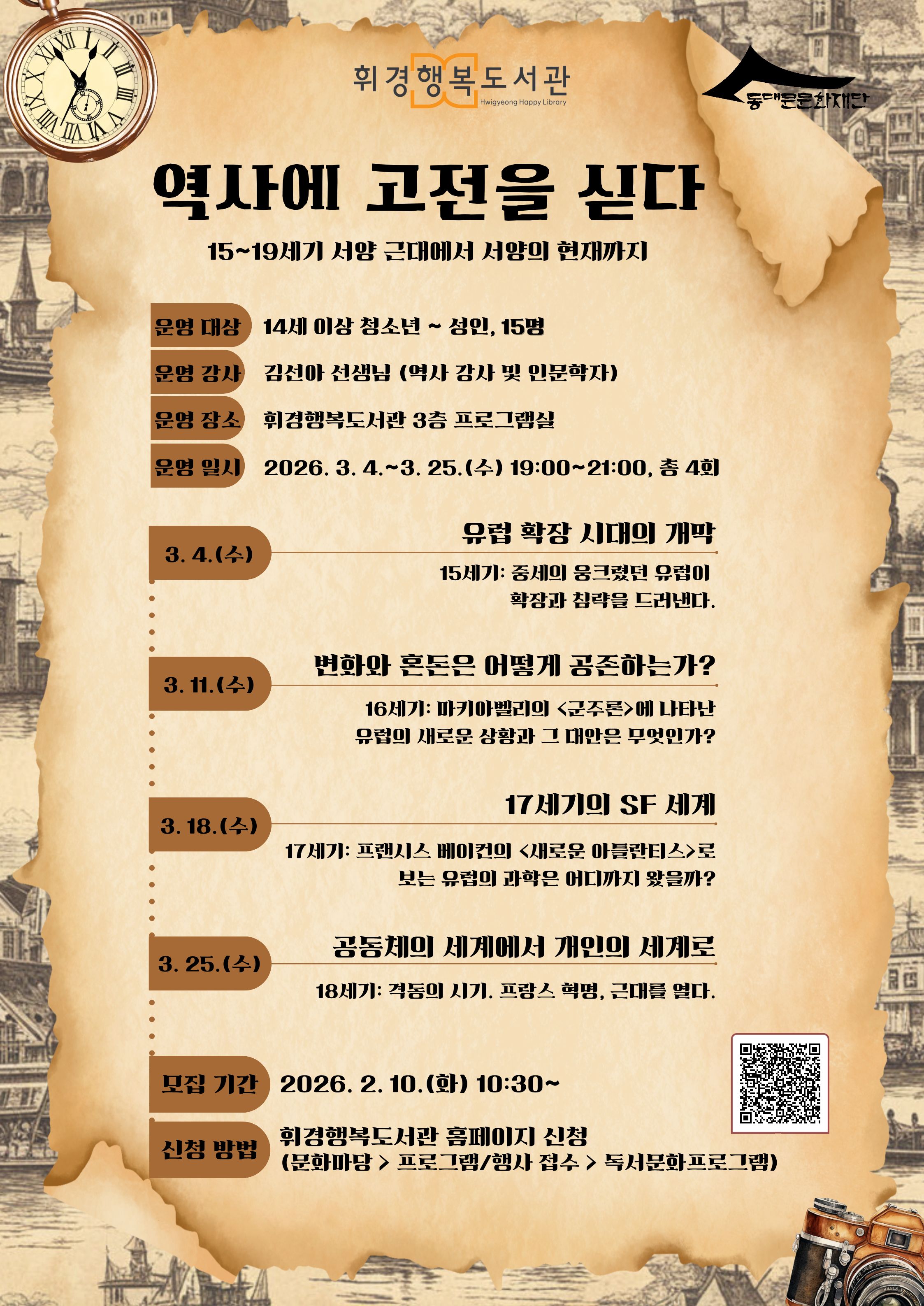 | 강좌명 | 휘경행복 [26년 1분기 독서·문화 프로그램] 역사에 고전을 싣다 |