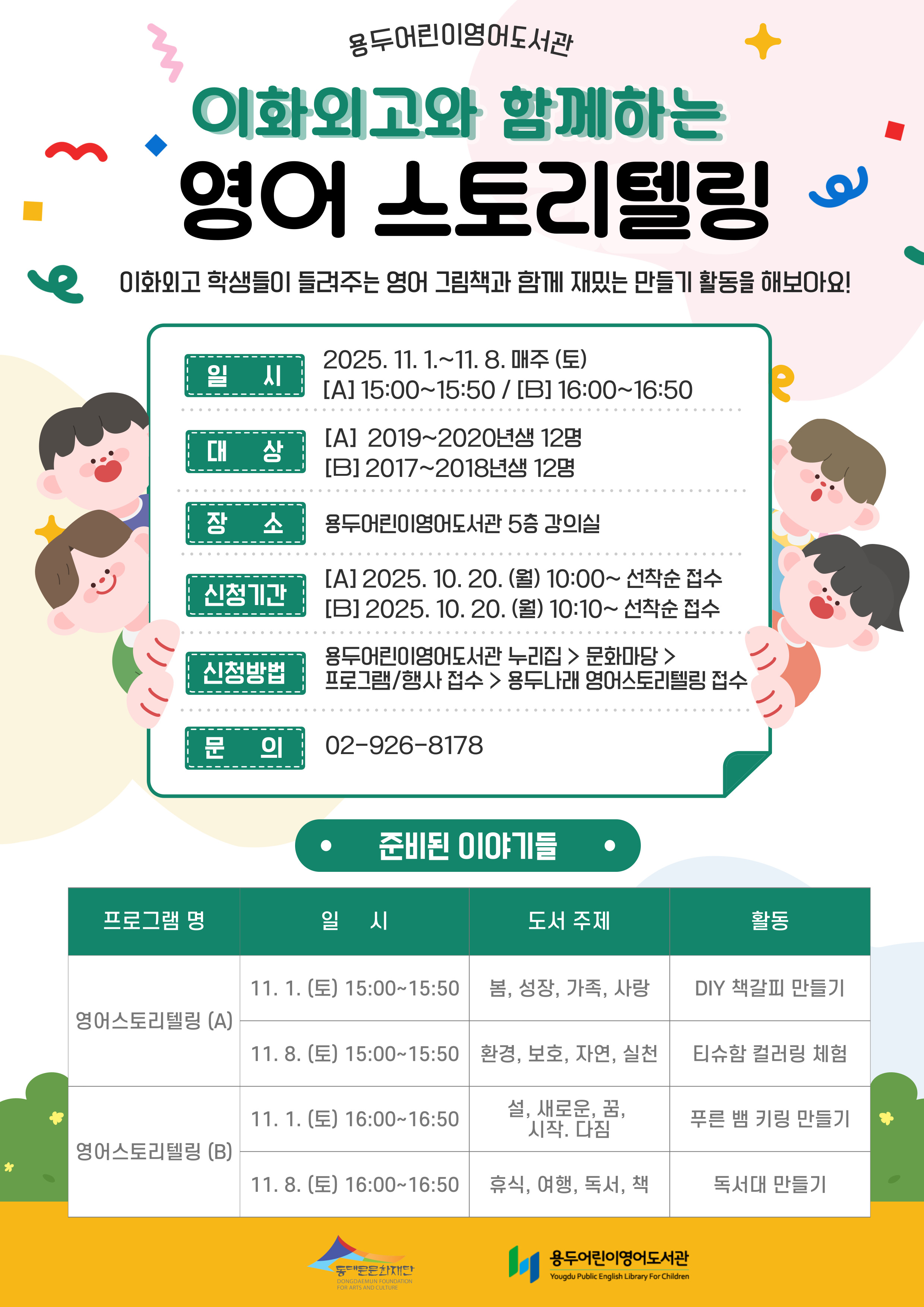 제목 | [용두어린이영어도서관] 2025년 이화외고와 함께하는 영어스토리텔링 |