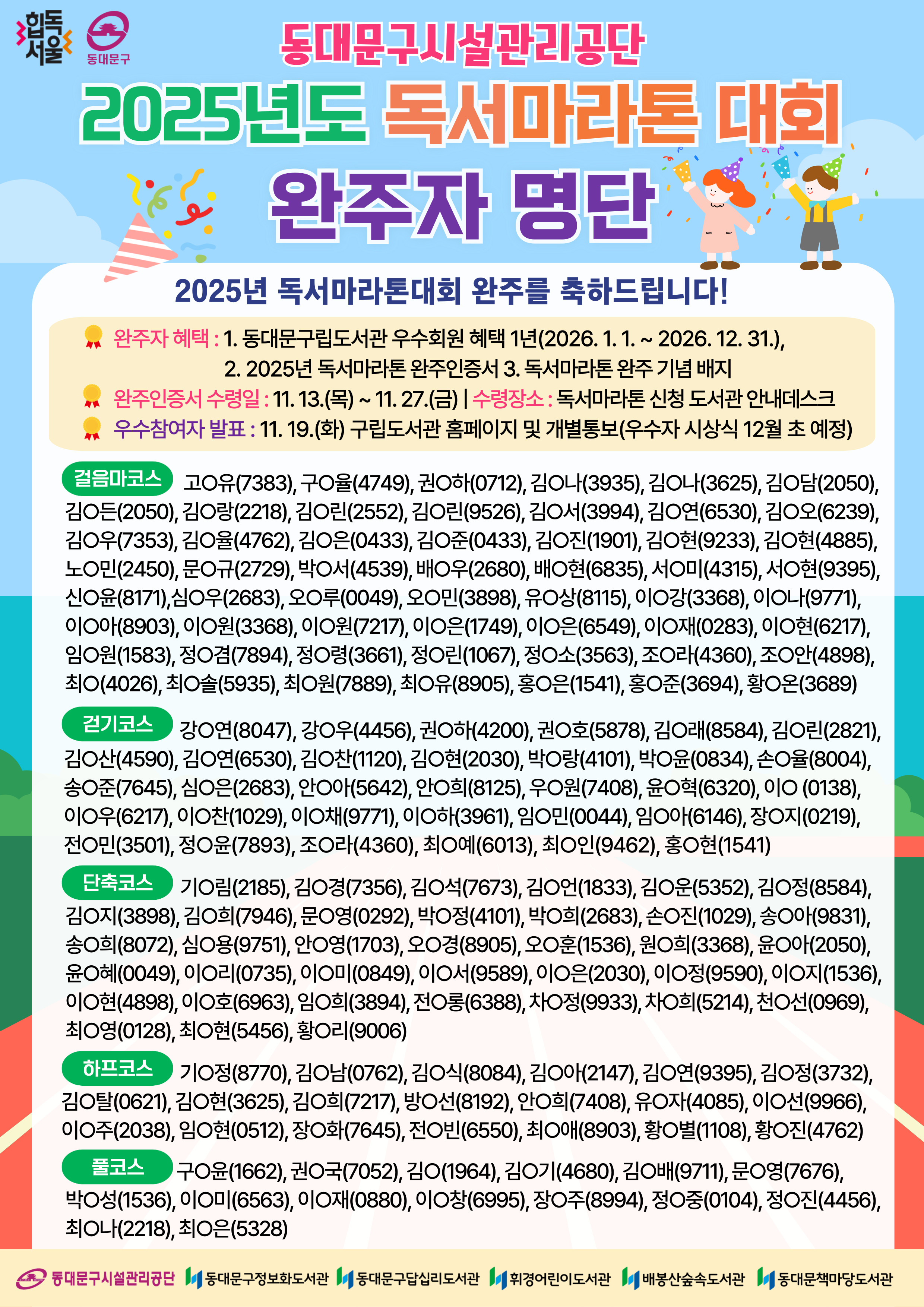 [공지] 2025년도 독서마라톤대회 완주자 명단 안내