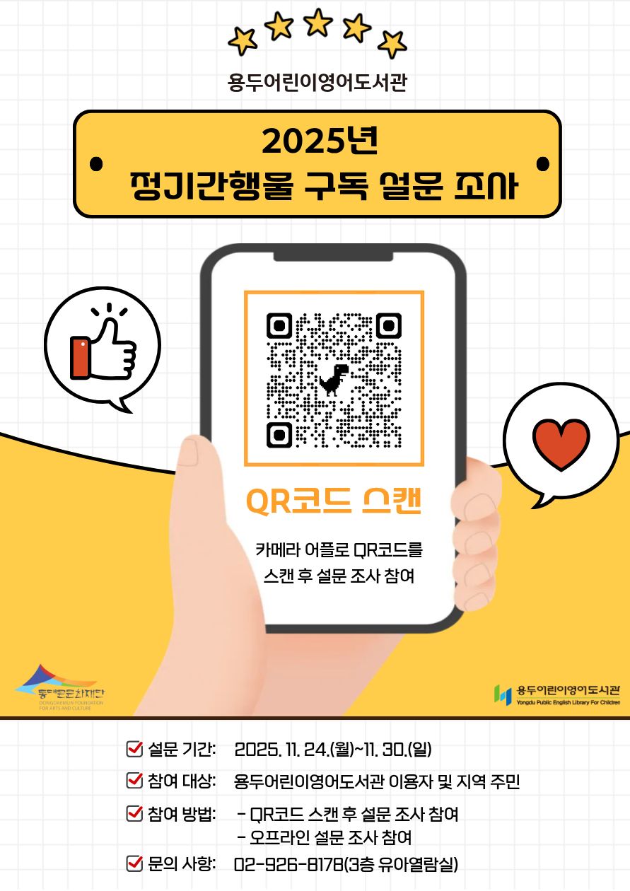 [용두어린이영어도서관] 2025년 정기간행물 구독 설문 조사 안내(11/24~11/30)